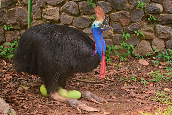 食火鸡(Cassowary,又称鹤鸵)是澳大利亚独有的鸟类,外表很像驼鸟,正如它们的“表亲”鸸鹋(Emu)一样,这些长着刚毛的体型庞大而不会飞翔的鸟类也属于走禽类。