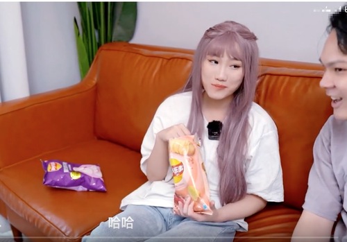俩人一边吃零食一边聊工作,聊生活。不像室友更像是情侣。男主在聊天期间不忘偷瞄了女主几眼,被女主察觉