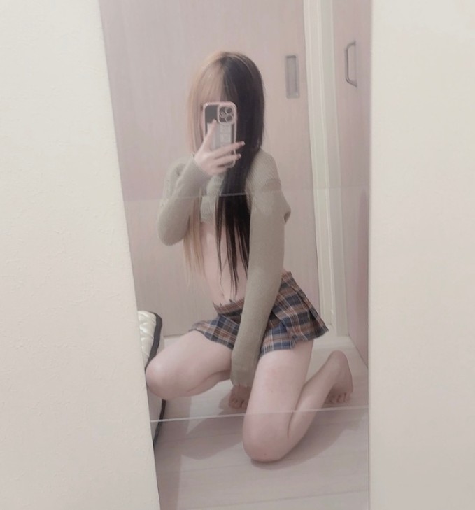 ▼姑娘一头长发,身材纤瘦、皮肤雪白,自拍尺度十分大